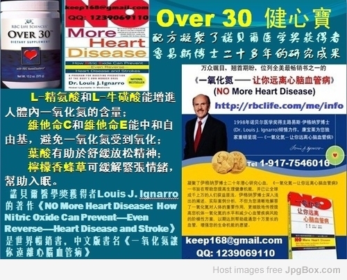 Over 30(健心寶) 的配方凝聚了Louis二十多年的研究成果。L-精氨酸和L-牛磺酸能增進人體內一氧化氮的含量;維他命C和維他命E能中和自由基,避免一氧化氮受到氧化;葉酸有助於舒緩放松精神;檸檬香蜂草可緩解緊張情緒,幫助入眠。諾貝爾醫學獎獲得者Louis J. Ignarro的著作《NO More Heart Disease: How Nitric Oxide Can Prevent----Even Reverse----Heart Disease and Stroke》是世界暢銷書,中文版書名《一氧化氮讓你遠離心腦血管病》