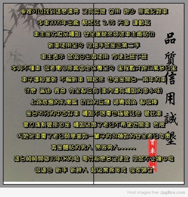 Attention: Do not manually edit the code, or your images will not work later For forums (vbulletin, PHPbb): [URL=https://www.jpgbox.com/page/46804_800x600/][IMG]https://www.jpgbox.com/jpg/46804_800x600.jpg[/IMG][/URL] For websites (hi5, myspace, eBay) <a href="https://www.jpgbox.com/page/46804_800x600/"><img src="https://www.jpgbox.com/jpg/46804_800x600.jpg" border="0" alt="Image 46804" title="Image 46804"/></a> Direct link to page