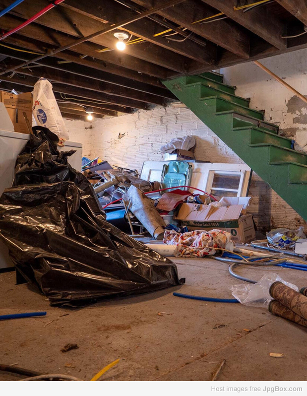 Cluttered basement affected by moisture and water damage, creating conditions for mold growth. Mold Men of Pittsburgh specializes in professional mold inspection, mold testing, mold remediation, and water damage restoration to protect homes and businesses throughout Pittsburgh. Fast, reliable, and certified mold cleanup services.